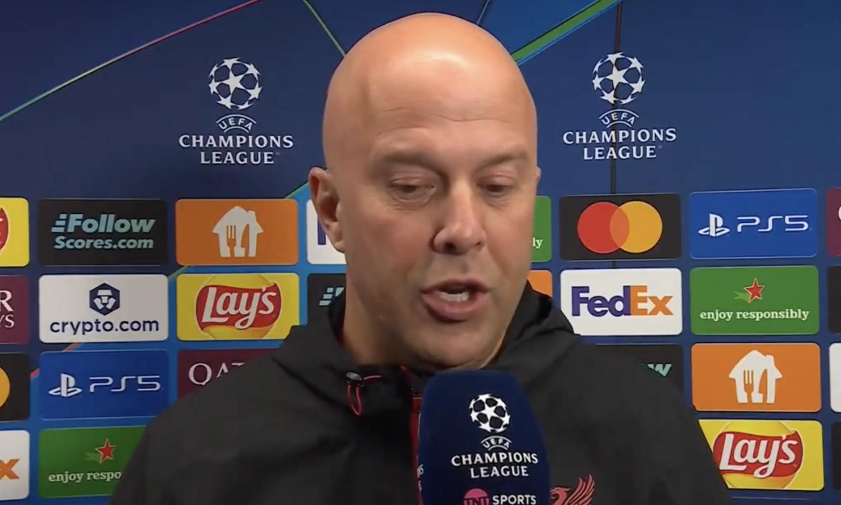 欧冠1/4决赛首回合,利物浦将客场对阵巴黎圣日耳曼,赛前,红军主帅斯洛特接受了TNT体育的采访。